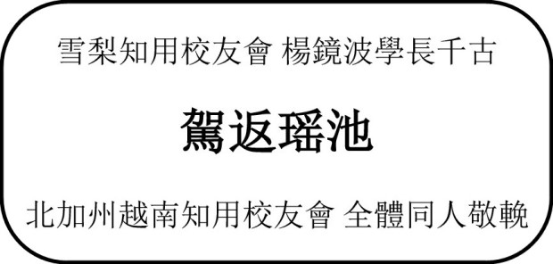 唐老師無病而终,安詳地永遠离开了我们。享年九十有五。他生前在越南西贡多间华校任教,桃李满天下。他献身教育,甘为人梯,默默奉献的精神,将是我们知用学子学习的好榜样.